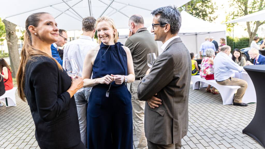 Sommer, Sonne, Standorteröffnung. Gemeinsam mit Kollegen, Mandanten und langjährigen Weggefährten weihten die Spezialisten für Marken- und Patentrecht von ETL IP am 30. Juni feierlich ihre neue Filiale in Berlin Adlershof ein. Die Patent- und Rechtsanwälte um Dr. Diana Taubert und Dr. Jörn Plettig empfangen ihre Mandanten zukünftig auch in der Volmerstrasse 1, mitten im Wissenschafts- und Wirtschafts-Hotspot. Zur Eröffnung genossen alle Gäste das Beisammensein in ausgelassener Atmosphäre mit frischen Snacks und kühlen Getränken.